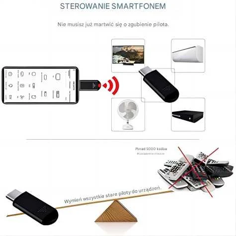 Miniaturowy adapter zdalnego sterowania na podczerwień do smartfona