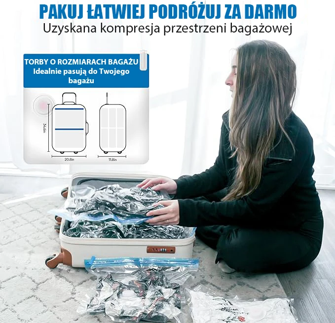 9-pak lekkich toreb podróżnych z elektryczną pompką USB | Kompaktowe worki próżniowe na ubrania