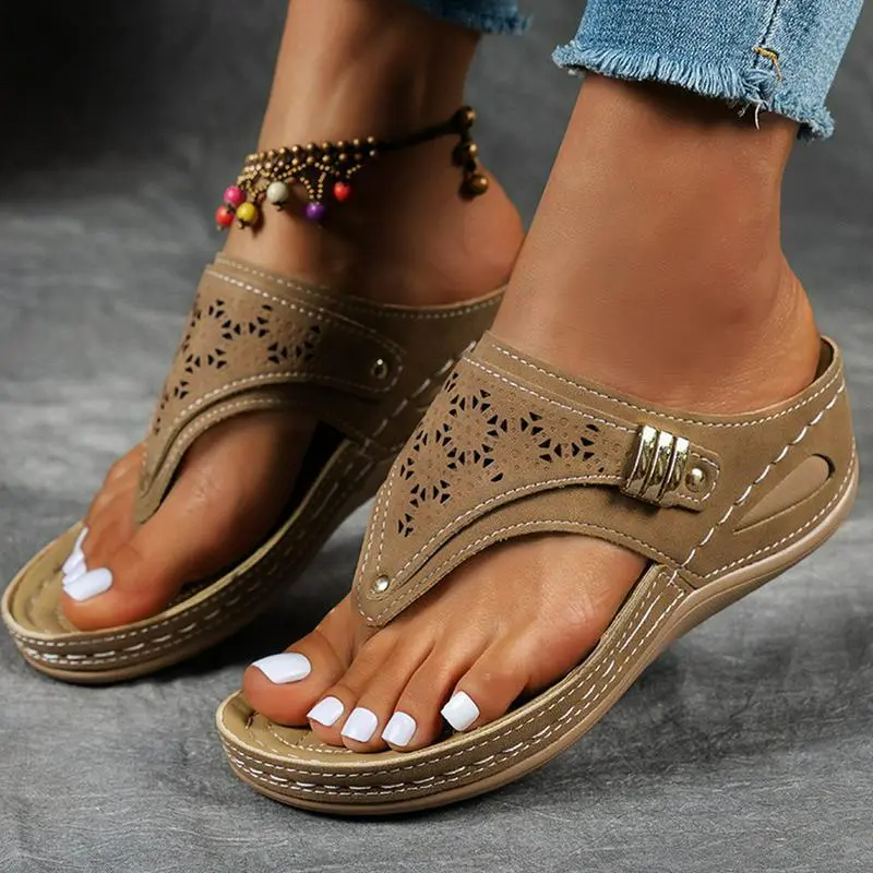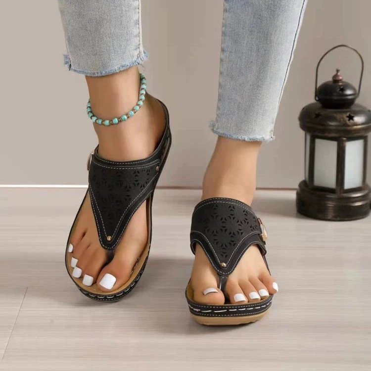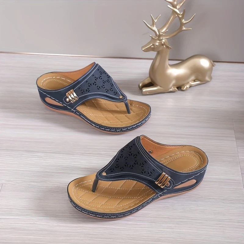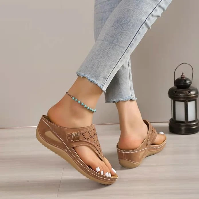 Sandały retro z grubą podeszwą w jodełkę