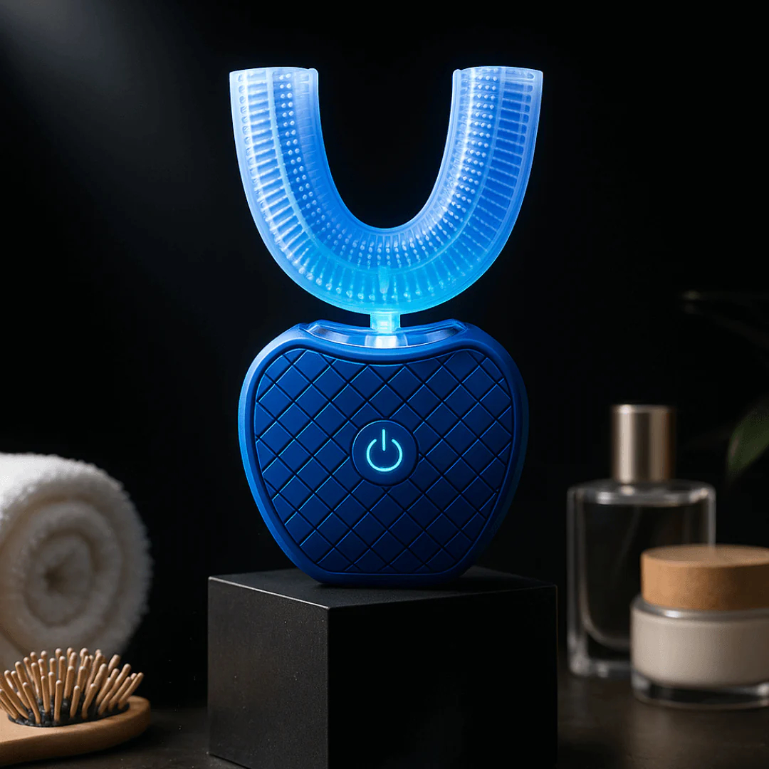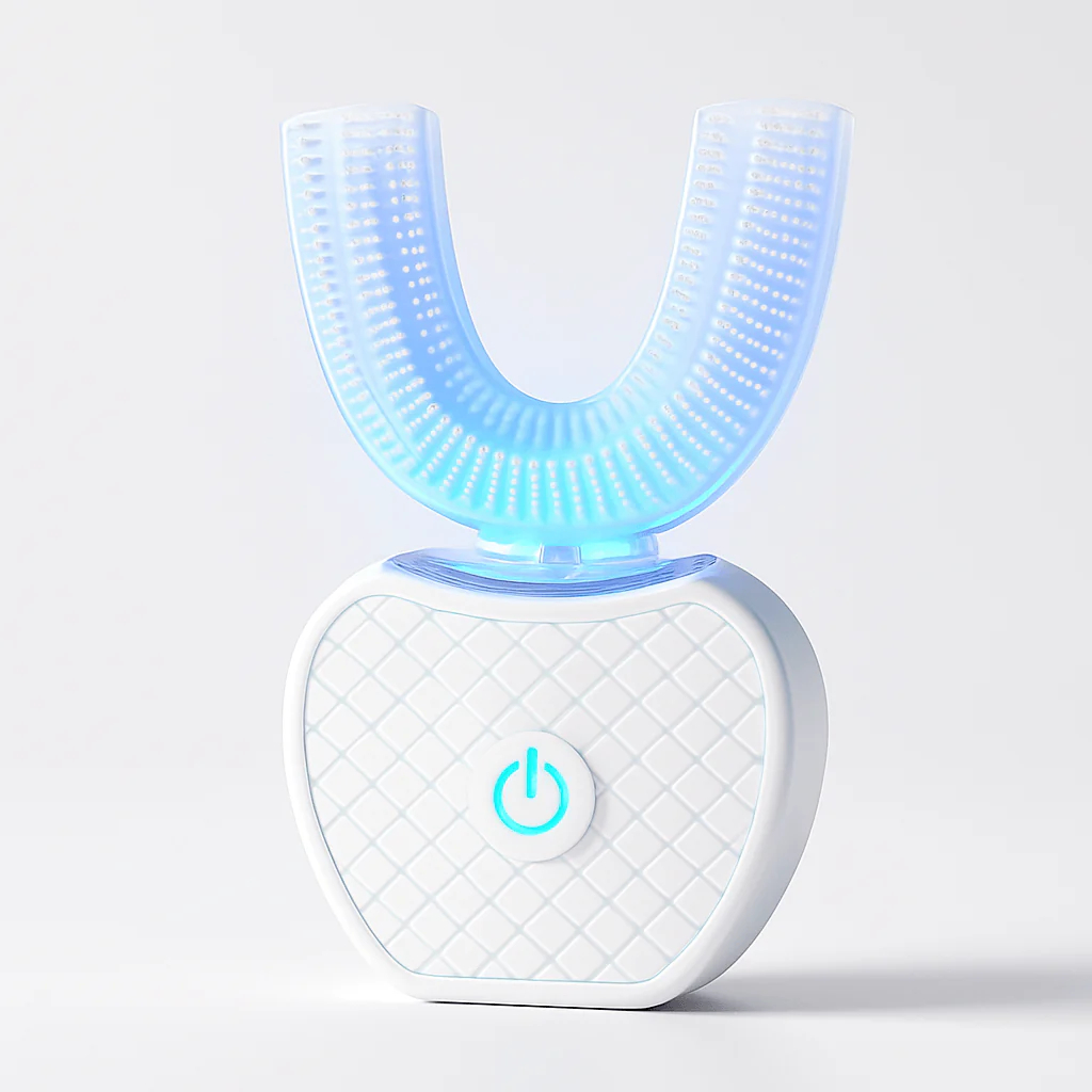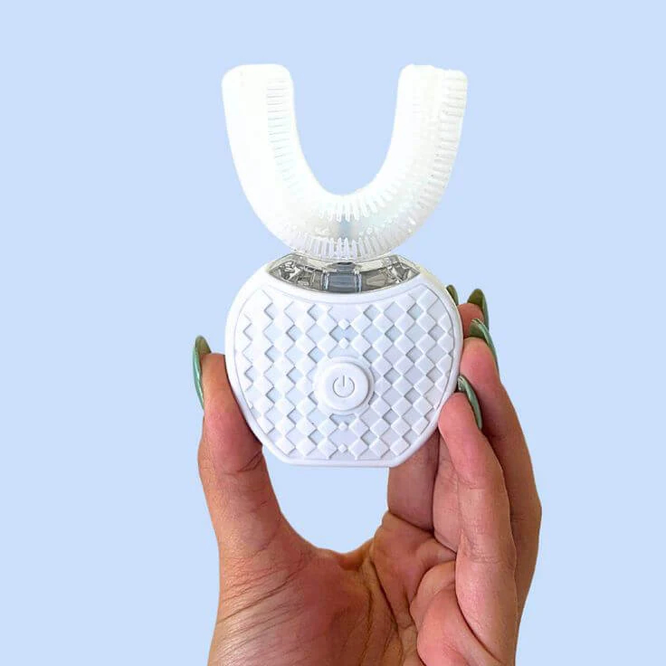 Ultradźwiękowa elektryczna szczoteczka do zębów dla dorosłych, soniczna szczoteczka do zębów 360°, czyszczenie jamy ustnej, bezprzewodowe ładowanie i światło LED | Wodoodporna główka szczoteczki w kształcie litery U chroni dziąsła