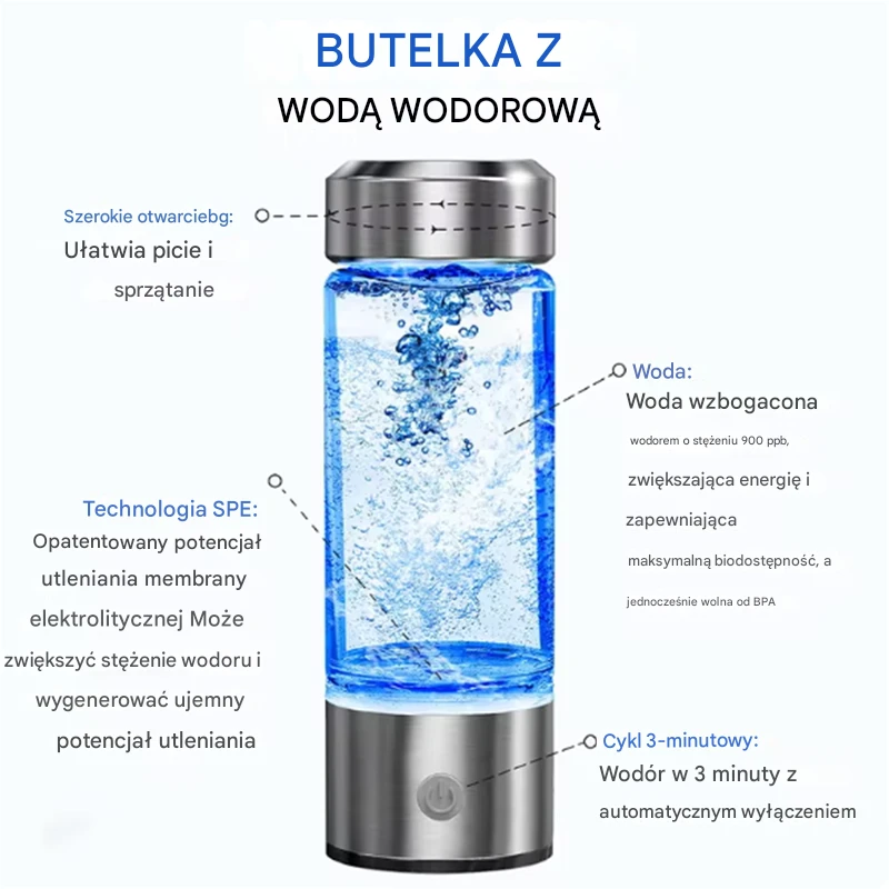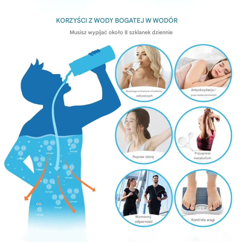 Przenośny, bogaty w wodór borokrzemianowy, elektrolityczny kubek na wodę